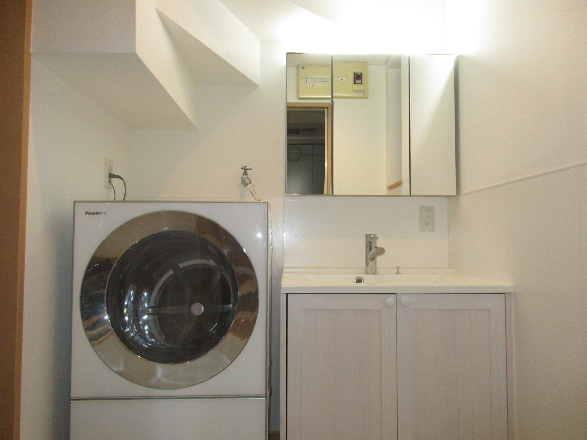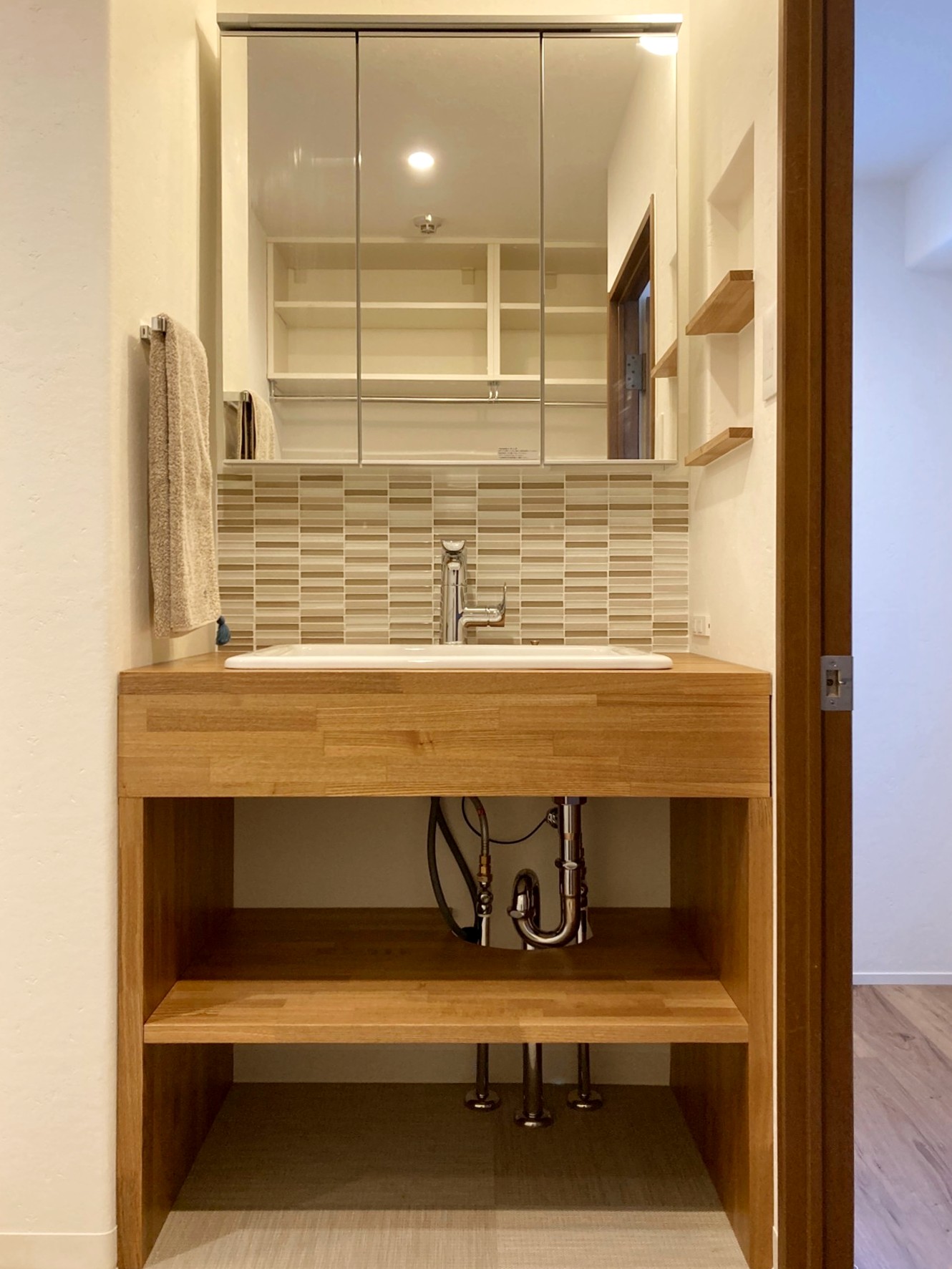 規格サイズの洗面化粧台ではぴったり納まるものがなかったのですが、